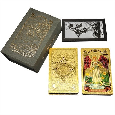 Portátil Luxe Gold Foil Tarot Deck Nice Plástico Pacote Oracle Cartões Board Game para Iniciantes Custo Digno